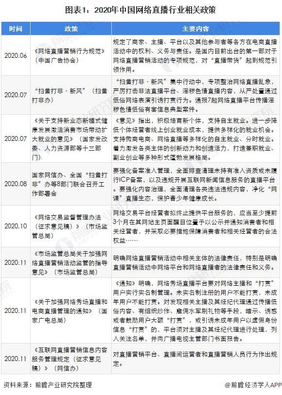 2020 年以來,隨著各種新形態的網絡直播模式的出現,我國網絡直播政策更是密集出臺,網絡直播行業不斷向健康方向發展。