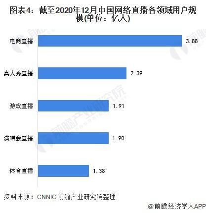 根據 CNNIC 統計數據顯示,截止 2020 年 12 月,我國電商直播用戶規模達到 3.88 億人,在所有網絡直播細分中排名第一。