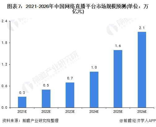 2021 年,預計中國網絡直播將持續高速增長,市場規模有望達到 0.3 萬億元 ; 隨著網絡直播滲透率的不斷提升,我國網絡直播習慣基本養成,預計至 2026 年我國網絡直播市場規模將超過 2 萬億元。