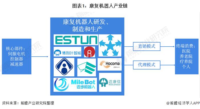 康復機器人行業產業鏈可分為三個部分。其中,產業鏈上游市場參與者主要為康復機器人核心部件供應商,主要包括硬件生產商和軟件供應商。產業鏈中游環節主體為康復機器人研發、制造和生產商,是康復機器人設備的技術所有者。下游涉及終端消費群體,包括醫療機構、養老院、療養院和個人消費者。