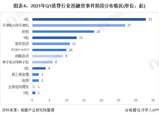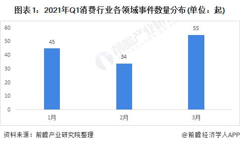 從數量來看,2021 年一季度消費行業共發生 137 起投融資事件。分月來看,2021 年 1-3 月的投融資事件數量分別為 45 起、34 起和 55 起投融資事件數量。