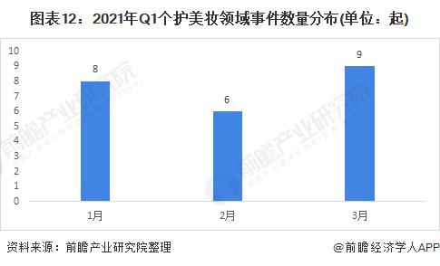 從事件數量來看,2021 年一季度共有 23 起個護美妝領域投融資事件。1 月、2 月和 3 月的數量分別為 8 起、6 起和 9 起。