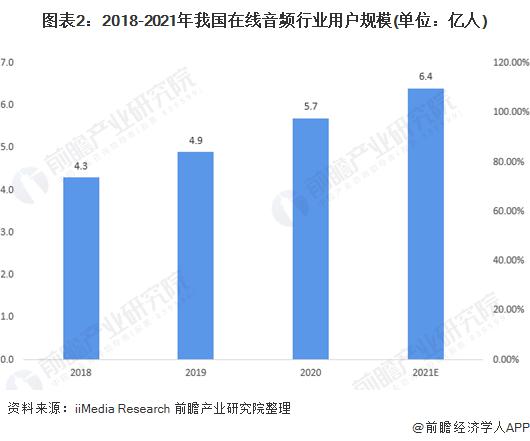 據(jù) iiMedia Research 數(shù)據(jù)顯示,2018 年以來(lái),我國(guó)在線音頻行業(yè)用戶規(guī)模呈現(xiàn)逐年穩(wěn)步增長(zhǎng)趨勢(shì)。2020 年,用戶規(guī)模達(dá)到 5.7 億人,同比增長(zhǎng) 16.3%。未來(lái)這種增長(zhǎng)趨勢(shì)將繼續(xù)保持下去,預(yù)計(jì) 2021 年用戶規(guī)模將達(dá)到 6.4 億人。