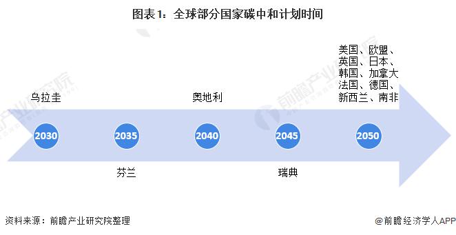 碳中和指通過植樹造林、節能減排等方法增加碳吸收量,將碳吸收量與碳排放量抵消,實現碳中和。目前,全球主要國家都承諾最晚于本世紀中葉完成國家層面碳中和計劃。例如,歐盟設定了到 2020 年所有新建筑都需接近零能源消耗的目標,并且需要 2050 年完成在《綠色協議》制定的整個歐盟的凈零排放目標。美國政府承諾到 2030 年,溫室氣體排放水平比 2005 年減少 50-52%,最終到 2050 年,使美國實現碳中和。亞洲國家日本和韓國也都在 2020 年年底發布了國家層面的綠色發展戰略,提出目標要在 2050 年實現碳中和。