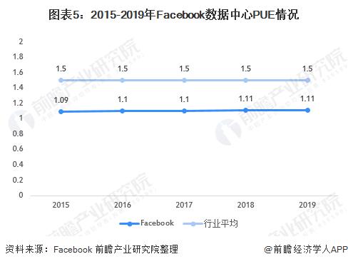 目前,國際上互聯網企業數據中心加速推進可再生能源使用,如 Facebook 大量簽約購買可再生能源,已經在全球范圍內簽訂了超過 6GW 的可再生能源合同,其 2019 年度可持續發展報告顯示,相對于行業平均 PUE1.5,Facebook 數據中心更加高效,2015-2019 年始終維持在 1.1 上下。
