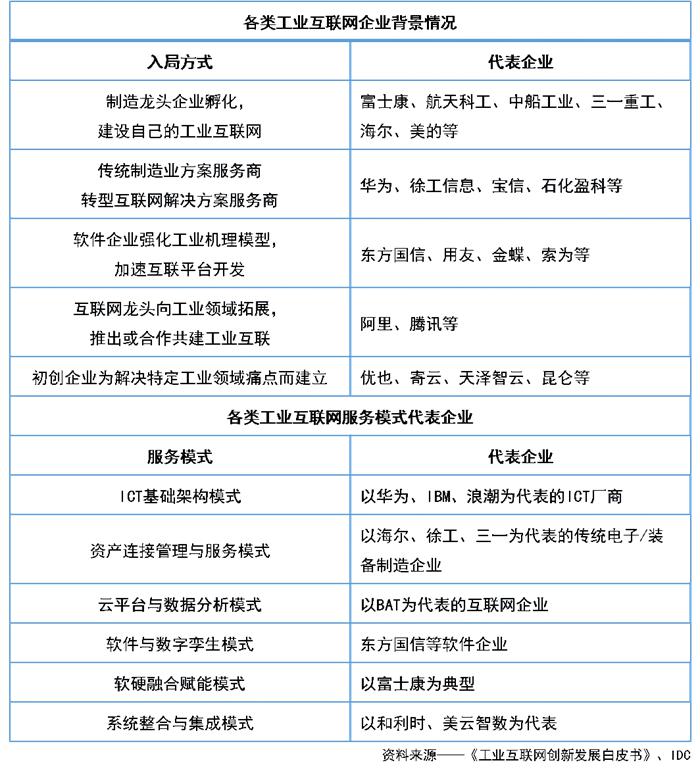 由于工業互聯網涉及行業廣泛,入局公司背景多樣,同時其服務模式側重也各有不同。