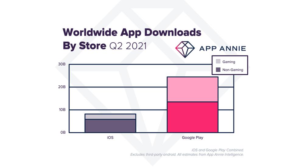 2021 第二季度全球移動應用下載數據(按平臺劃分)