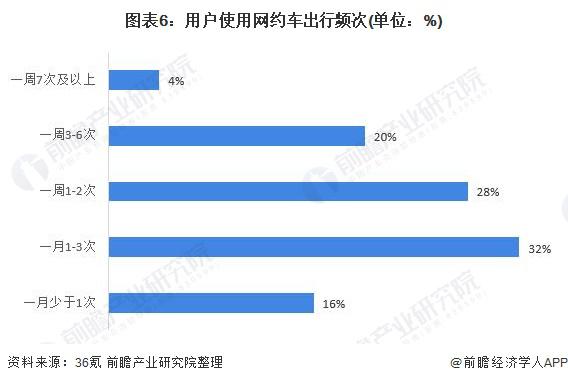 得益于政府對公共交通的引導以及移動共享出行的日益成熟,公共交通和共享出行模式越來越多的受到消費者的青睞,根據 36 氪發布的《網約車用戶調研報告》,有 81% 的受訪者常使用網約車 ( 包括網約出租車 ) 作為出行方式,其中用戶使用網約車出行的頻次較高,52% 的用戶每周使用一次及以上的網約車。其中,28% 的用戶每周使用 1-2 次網約車,20% 的用戶每周使用 3-6 次網約車。