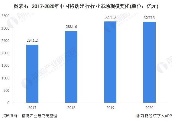 2017-2019 年,我國移動出行市場規模呈現出逐年增長的態勢。2020 年一季度,新冠肺炎疫情席卷全國,居民出行受到限制 ; 但伴隨著國內政府積極抗擊疫情,第二季度疫情得到有效控制,移動出行活躍度逐漸恢復。整體來看,2020 年移動出行行業整體市場規模下降幅度不大,市場規模約為 3255.3 億元。