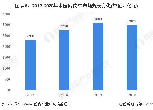 2020 年全年網約車市場規模也因此受到影響,較 2019 年下降 3.36%,為 2980 億元。