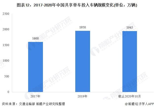 在經歷的互聯網共享單車的爆發式發展后,我國共享單車市場發展逐漸趨于平穩發展,近幾年我國共享單車投入車輛維持在 1600-2000 萬輛之間水平。根據交通運輸部公布的數據顯示,截至 2020 年 10 月,共享單車投入車輛達 1945 萬輛。