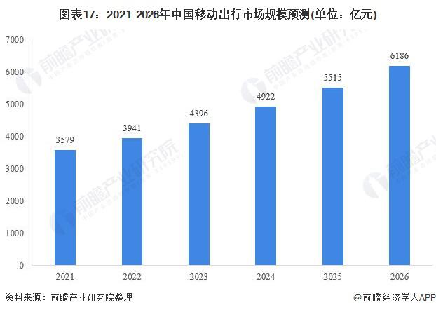 結合我國移動出行行業細分市場發展前景來看,我國移動出行行業仍將保持高速增長態勢,到 2026 年,全國移動出行市場規模將達到 6186 億元。