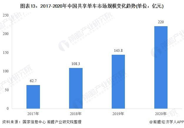 在市場投資趨于理性下,共享單車的消費需求仍保持增長態勢,2020 年全國共享單車市場規模為 220 億元。