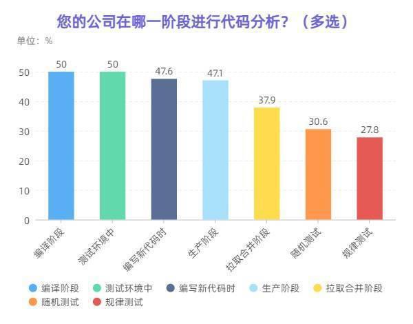 問題 4:您的公司在哪一階段進行代碼分析?(多選)
