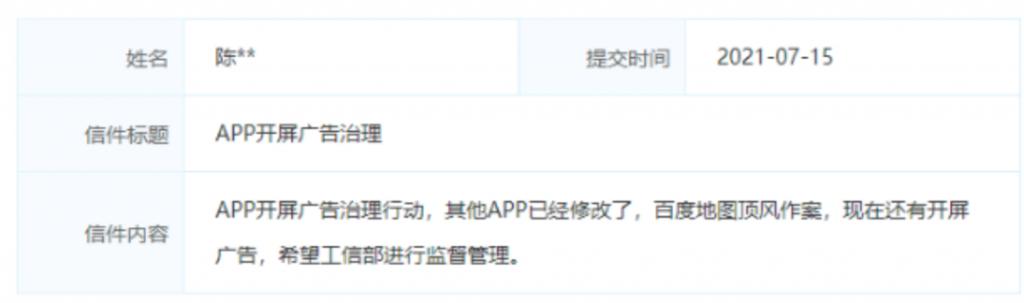 2021 年 7 月 8 日,工信部發文指出,已針對近期用戶反映強烈投訴較多的 App 存在 " 彈窗信息標識近于無形、關閉按鈕小如螻蟻、頁面偽裝瞞天過海、誘導點擊暗度陳倉 " 等問題進行集中整治,百度、阿里、騰訊、字節跳動、新浪微博、愛奇藝等 68 家頭部互聯網企業已按要求完成整改。