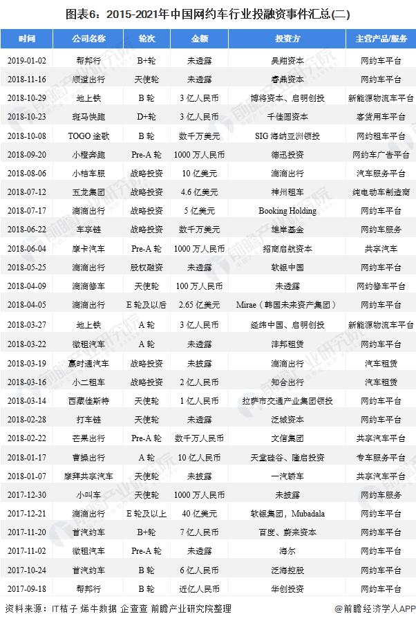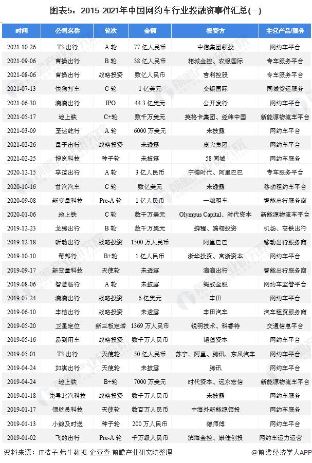 2015 年 -2021 年我國網約車行業(yè)的主要投融資事件如下: