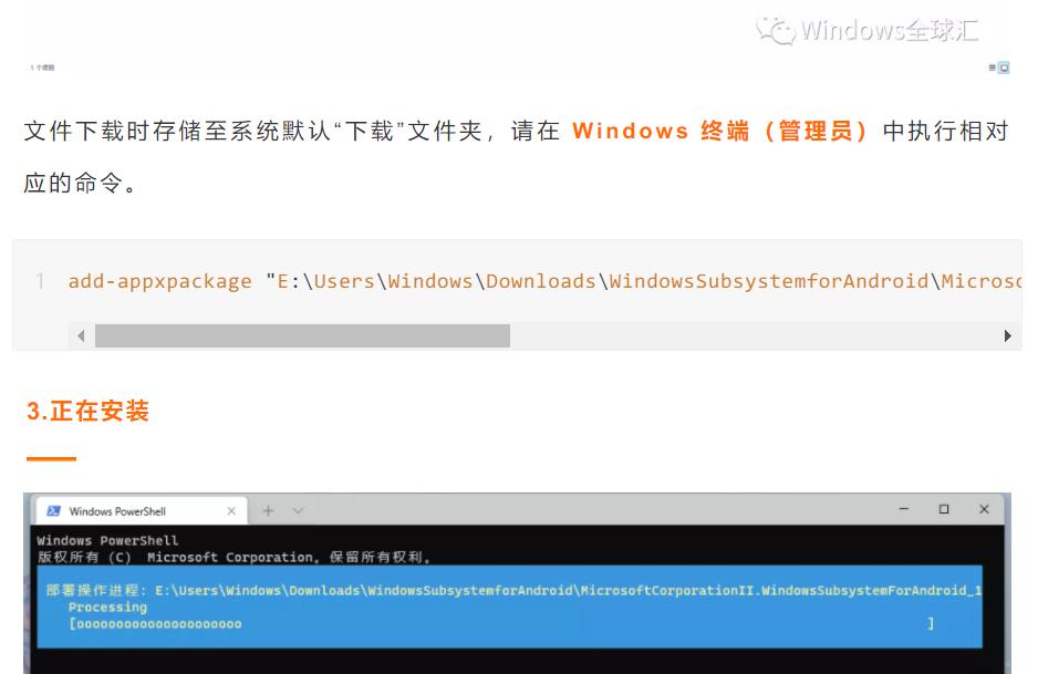 好在 WSA 支持側載,也就是可以直接安裝 APK 包,我們也只能用這個方式。但過程相當復雜,需要使用多個命令行條目。