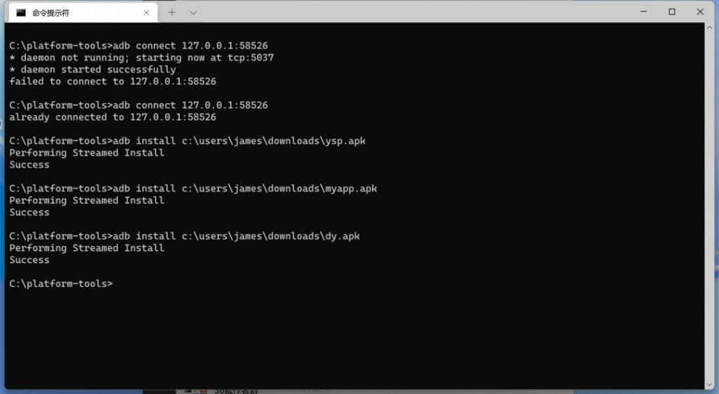 側載 APK 包的步驟是:下載 ADB 調試工具 → 在命令行中運行并連接到虛擬機 → 輸入命令以安裝 APK(具體方法可以參考上述教程)。安裝好的應用會出現在開始菜單,并且可以用開始菜單的右鍵,或者 " 設置 - 應用 " 等方式卸載。