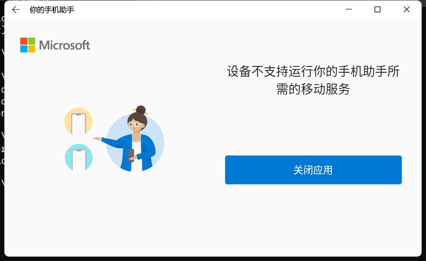 微軟親兒子 " 你的手機助手 ":提示 " 設備不支持運行所需的移動服務 "。