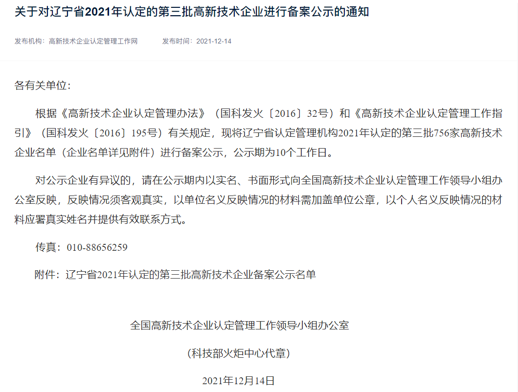 近日,全國高新技術企業認定管理工作領導小組辦公室公布2021年遼寧省第三批國家認定高新技術企業名單,沈陽唯思科技順利通過認定,榮獲“國家高新技術企業”稱號。