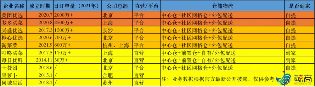誕生于 2017 年的叮咚買菜、2019 年獲得阿里巴巴投資的十薈團、2019 年獲得京東投資的興盛優選、以及滴滴孵化的橙心優選,在早年的實踐中走出了不同的商業模式。