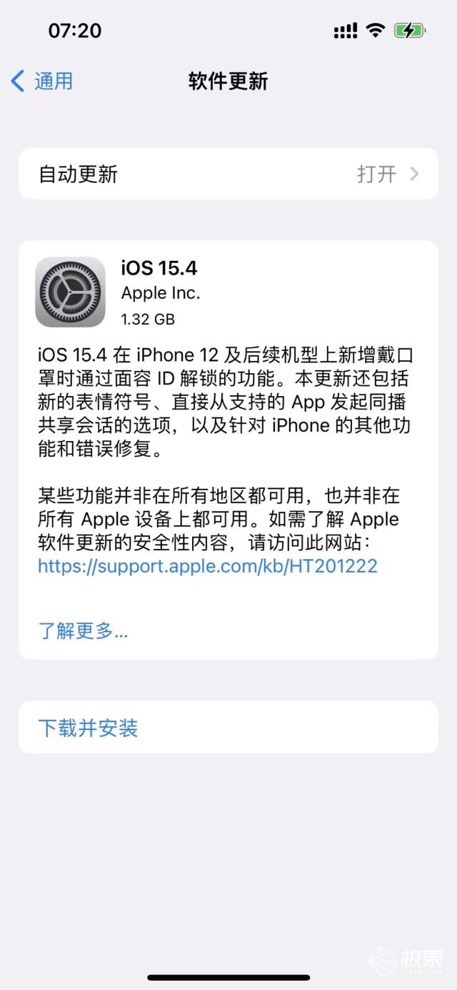 蘋果突然推送了 ios15.4 正式版更新,本次更新最大的升級就是支持戴口罩使用面容 ID,這在目前戴口罩成為常態的現實環境下可謂非常 " 應景 "。