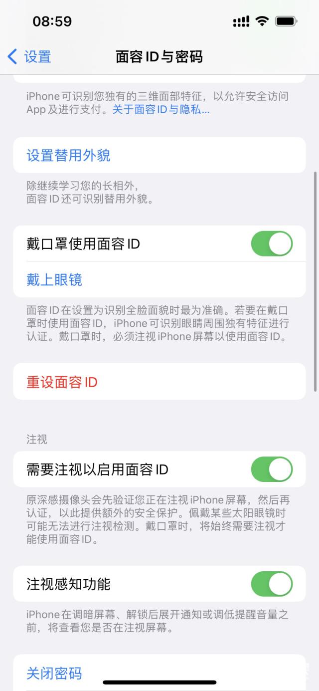 不過需要注意的是,當你佩戴口罩的同時還佩戴了眼鏡,面容識別則會很大概率識別失敗。此時在面容 ID 設置中選擇 " 戴上眼鏡 ",重新錄制一次面容即可完美解決該問題。當然戴墨鏡識別依然是不支持的。