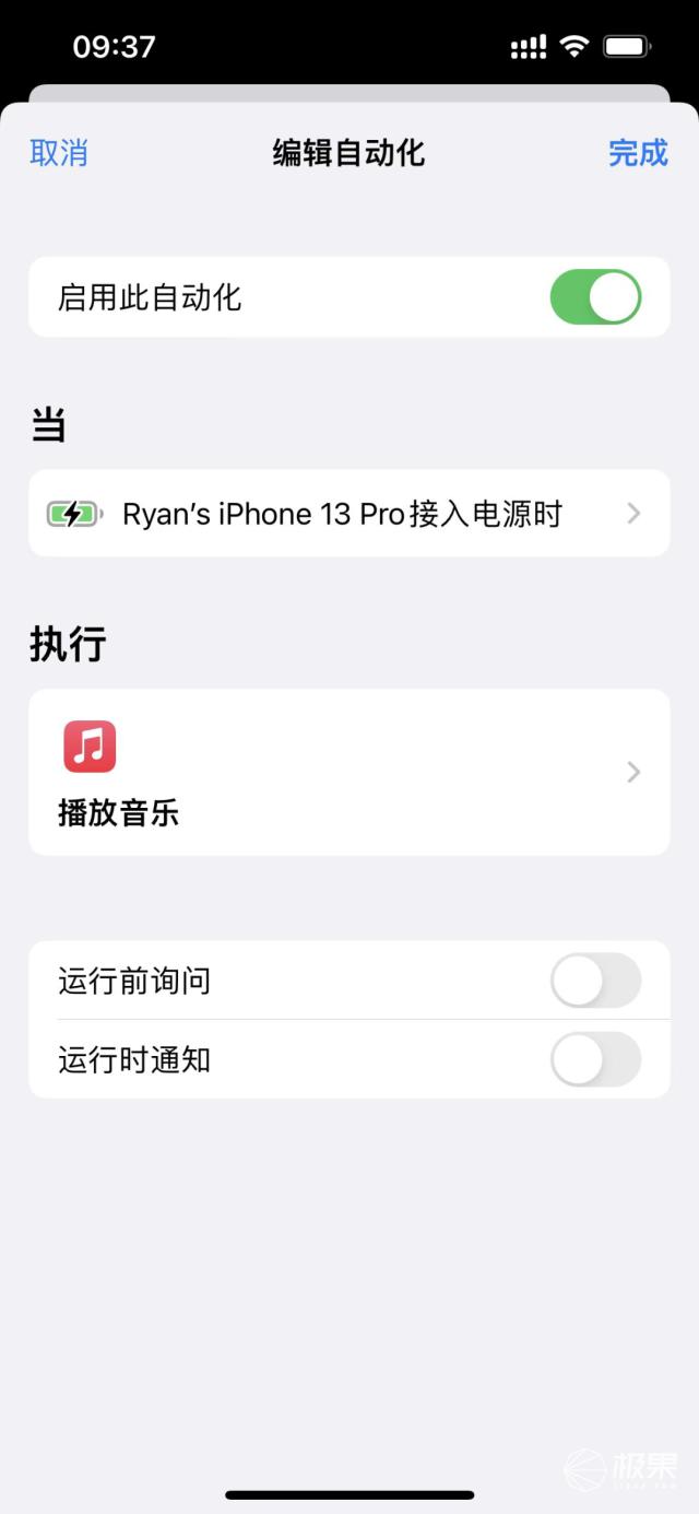 iOS 15.4 在捷徑自動化中增加了新的通知開關按鈕,關閉通知后運行自動化捷徑時可不再彈出通知。