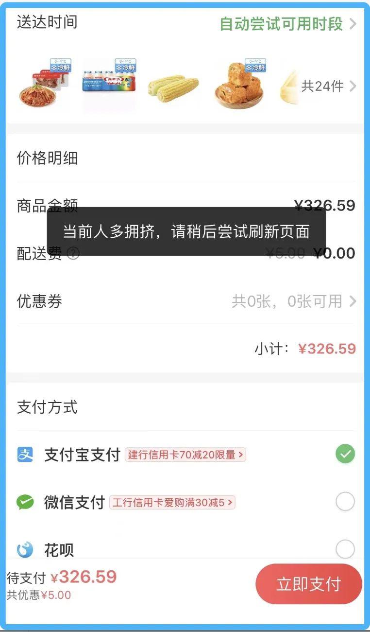即使前期做足了準備,在下單支付的過程中,運力約滿、商品售罄、系統崩潰等問題也時有發生,用戶買到、買齊心儀商品的概率依然不高。