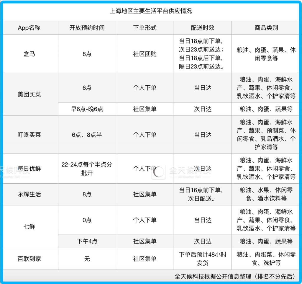 上海地區部分生活平臺搶購安排