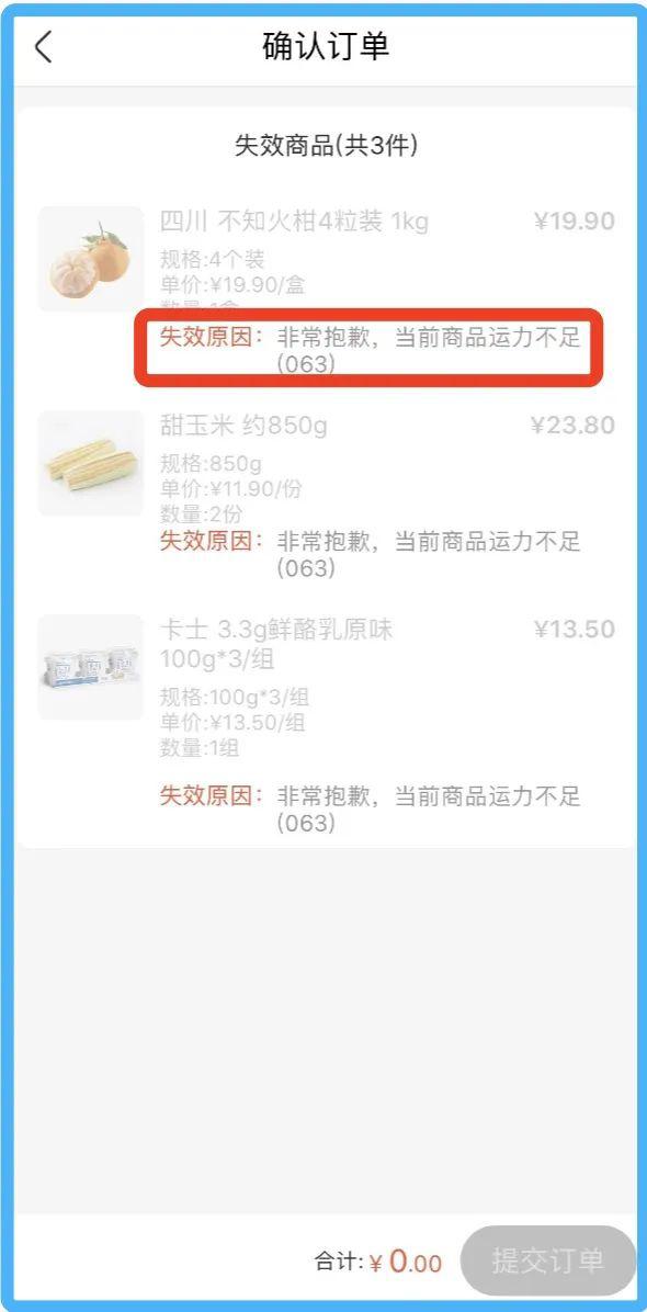 由于購買人數較多、需求量較大,在結算過程中,系統每卡頓一次,刷新后商品總會少幾樣。本著 " 寧可買多,不能遺漏 " 的原則,高靜的購物車里總會加購大幾百塊的商品,這樣 " 買一次就能吃很久 ",實際情況卻是,她幾乎沒有一次能將東西買齊。