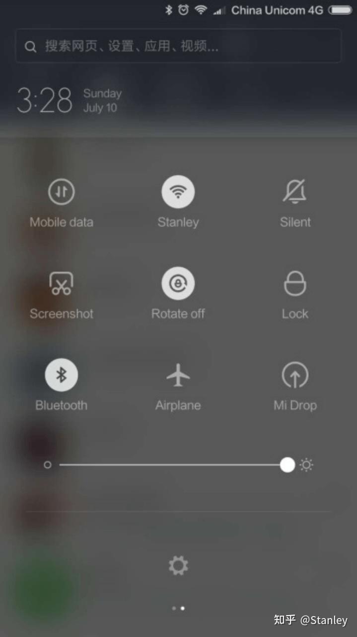 MIUI 調節亮度時會直接以當前操作界面為背景進行調節