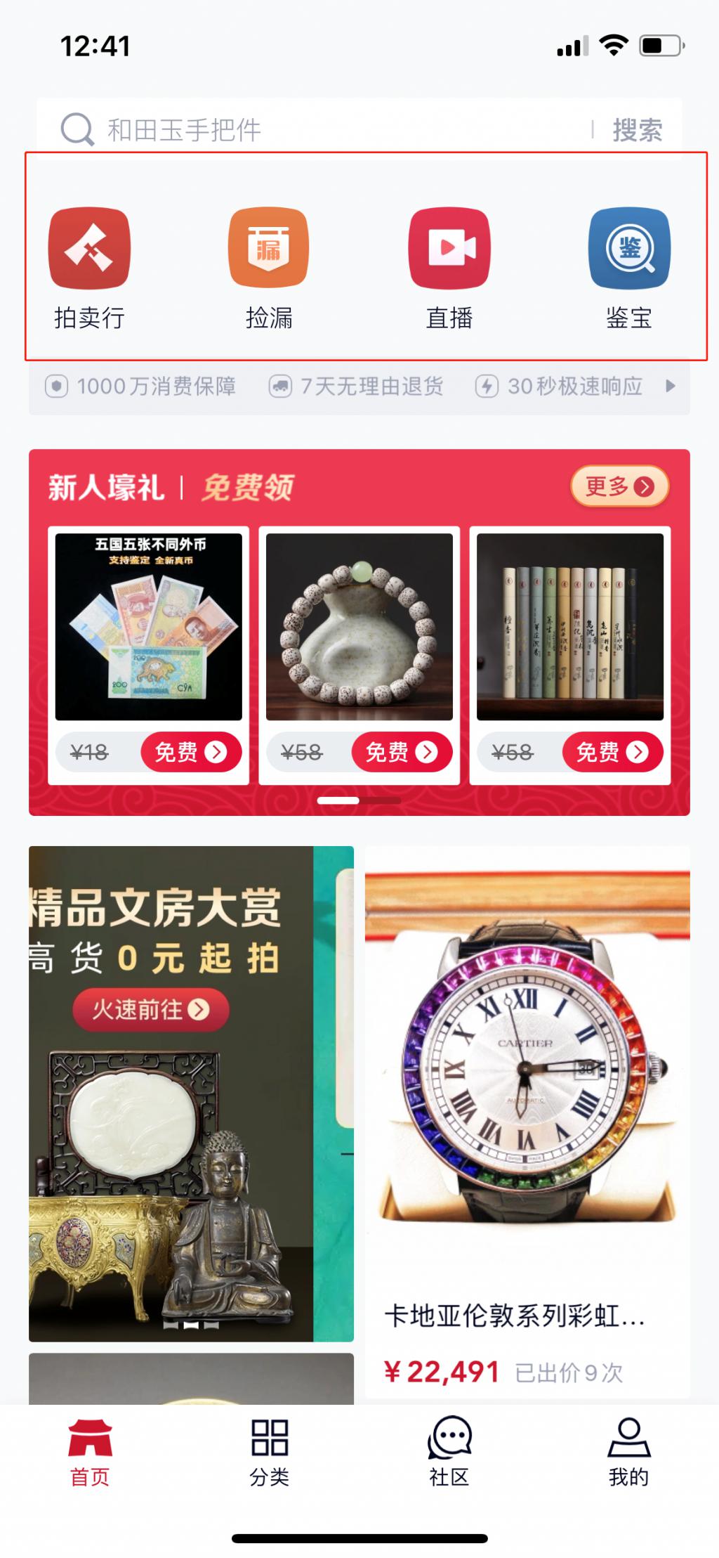 打開微拍堂的界面,主要有拍賣行、撿漏、直播、鑒寶四個主要功能。點開 " 拍賣行 " 界面,可以看到全國各地知名的拍賣行以及藏品;用戶可以在 " 撿漏 " 功能里根據(jù)圖片和資料選擇自己喜歡的品類搶拍或參與競拍;也可以在 " 直播 " 功能中為自己看中的藏品出價。
