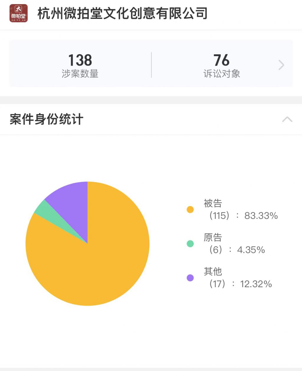 天眼查顯示,2018-2021 年,微拍堂司法糾紛數(shù)量明顯上升,其中排名前三的案件為網(wǎng)絡(luò)服務(wù)合同糾紛、網(wǎng)絡(luò)購物合同糾紛、買賣合同糾紛。而在這些案件中,微拍堂大多均以被告身份出席。