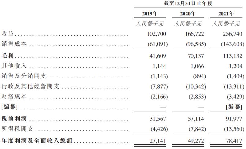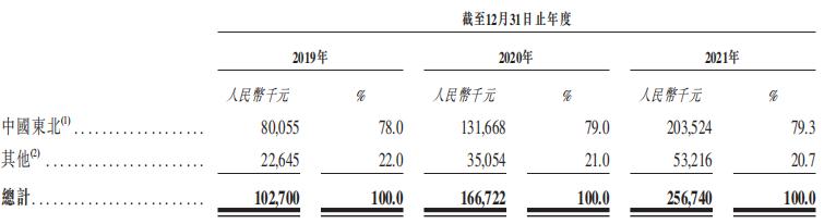 憑借在東北超市的地位,中寶新材 2019 年 -2021 年分別實現營收 1.03 億元、1.67 億元和 2.57 億元。