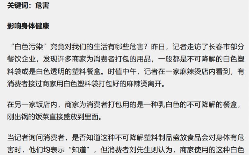 當年的新聞還留有往昔 " 限塑令 " 的時代的印跡,主要是宣傳塑料袋的危害,在末尾簡要的提了對于那些原先生產不可降解塑料袋的企業的影響。
