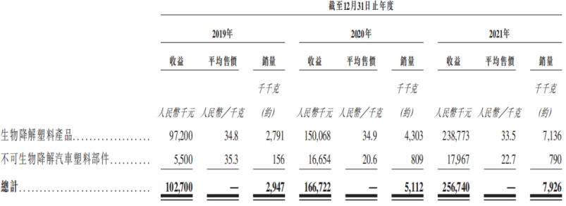 另一項產品生物降解塑料袋雖然能夠提價,但是三年來其售價卻從 34.8 元 / 千克下降到了 33.5 元 / 千克,僅僅在 2020 年提高了 0.1 元 / 千克。