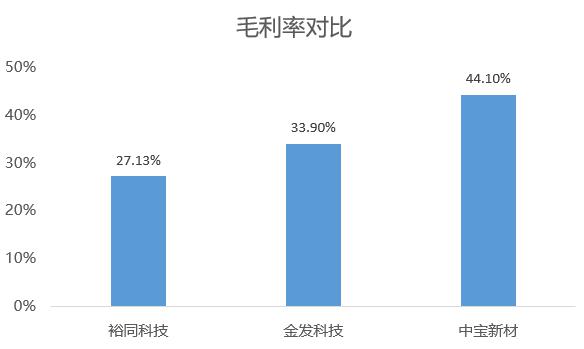據招股書,中寶新材綜合毛利率在 2019 年 -2021 年分別為 40.5%,42.1% 和 44.1%。