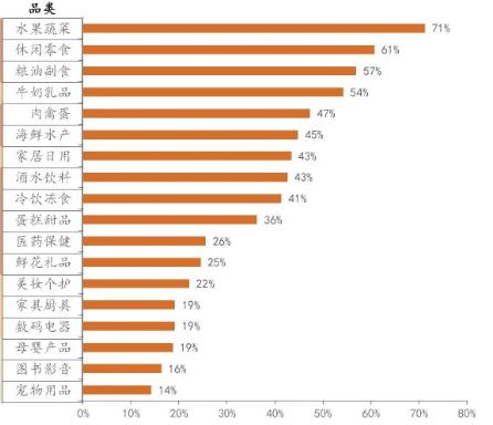 (用戶在近場電商中最喜歡下單的品類對比)