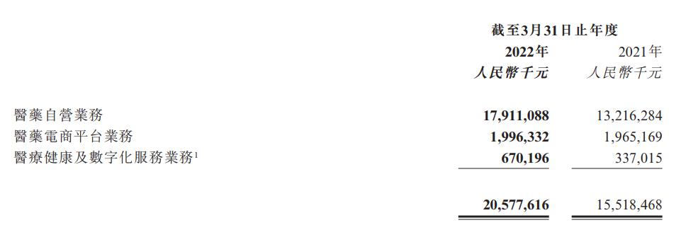 阿里健康也在上個月公布了截止今年3月31日的2022財年財報,營收、毛利同樣錄得全面增長。其中,該財年總收入為205.8億元,同比增長32.6%;毛利潤為41.1億元,同比增長13.6%。