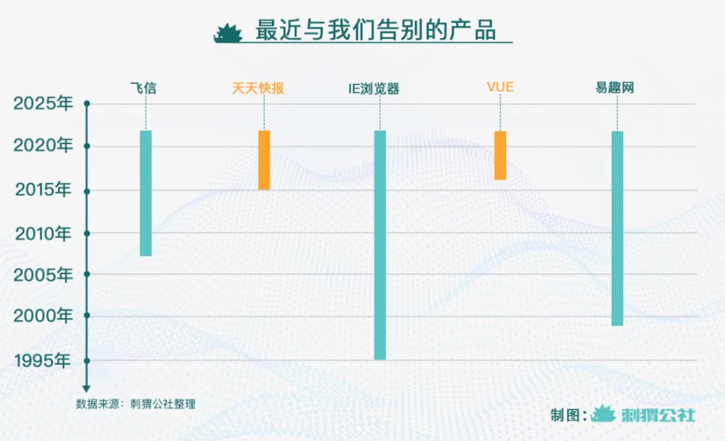 2022 年 7 月 25 日,90 后、95 前的大學生都用過的 " 青春回憶 " 中國移動飛信宣布即將停止服務;7 月 12 日,運營了 20 多年的 " 國內電商第一站 " 易趣網公告將停止運營;6 月 15 日,整整兩代互聯網用戶都用過的 IE 瀏覽器也宣布停止更新 ......
