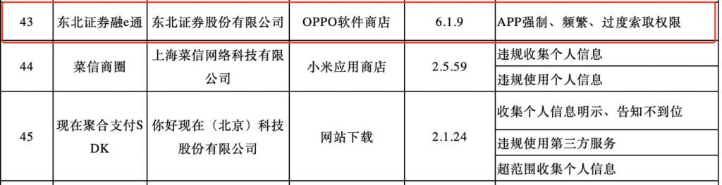 東北證券融 e 通 APP 存在的問題為 "APP 強制、頻繁、過度索取權限 "。該 APP 由東北證券股份有限公司(下稱 " 東北證券 ")開發,APP 來源于 OPPO 軟件商店,應用版本為 6.1.9。根據通報內容,東北證券融 e 通應在 9 月 5 日前完成整改落實工作。逾期不整改的,工信部將依法依規組織開展相關處置工作。