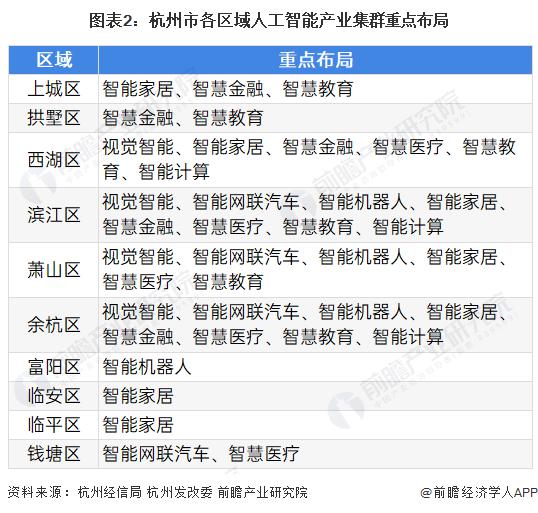《杭州市人工智能產(chǎn)業(yè)發(fā)展 " 十四五 " 規(guī)劃》提出要打造人工智能優(yōu)勢(shì)產(chǎn)業(yè)集群。其中,各區(qū)重點(diǎn)發(fā)展領(lǐng)域不同。上城區(qū)主要發(fā)展智能家居、智慧金融、智慧教育等 ; 拱墅區(qū)主要發(fā)展智慧金融、智慧教育等 ; 西湖區(qū)、濱江區(qū)、蕭山區(qū)和余杭區(qū)布局領(lǐng)域較多,包括視覺(jué)智能、智能網(wǎng)聯(lián)汽車(chē)、智能機(jī)器人、智能家居等 ; 富陽(yáng)區(qū)著重發(fā)展智能機(jī)器人 ; 臨安區(qū)和臨平區(qū)著重發(fā)展智能家居 ; 錢(qián)塘區(qū)聚焦智能網(wǎng)聯(lián)汽車(chē)和智慧醫(yī)療。