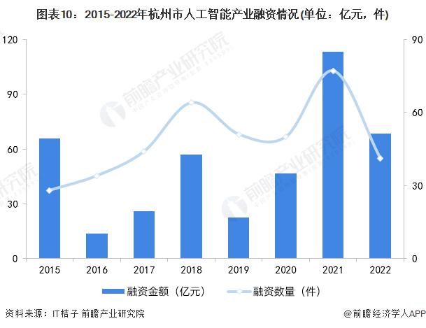 《中國(guó)城市人工智能發(fā)展指數(shù)報(bào)告》顯示,杭州人工智能產(chǎn)業(yè)資金支持力度處于全國(guó)頭部梯隊(duì)。2015-2021 年,杭州人工智能產(chǎn)業(yè)融資呈波動(dòng)態(tài)勢(shì),2021 年資本市場(chǎng)活躍,全年融資案例接近 80 件,融資金額超 100 億元。