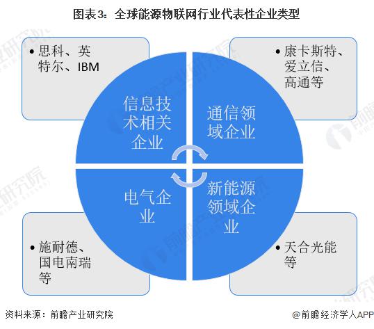 從全球能源物聯(lián)網(wǎng)領(lǐng)域代表性企業(yè)類型看,有思科、英特爾、IBM 等信息技術(shù)相關(guān)企業(yè),康卡斯特、愛(ài)立信、高通等通信領(lǐng)域企業(yè),施耐德、國(guó)電南瑞等電氣、電力領(lǐng)域企業(yè),天合光能等新能源企業(yè)。