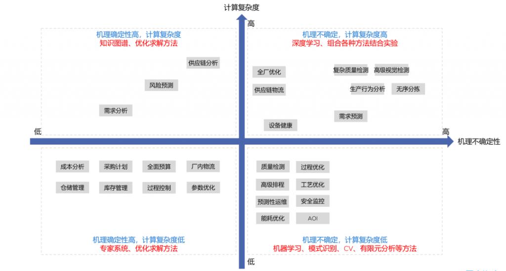 第二類是結(jié)合數(shù)據(jù)科學和機器學習技術(shù)的設(shè)備和生產(chǎn)過程智能化環(huán)節(jié)。場景包括 PHM 預測性維護、APS 智能排產(chǎn)、SCM 供應鏈優(yōu)化、RTO 生產(chǎn)實時優(yōu)化等,提升工業(yè)生產(chǎn)智能化決策能力。