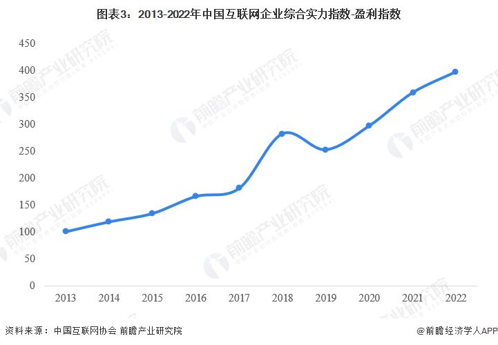 盈利指數通過統計分析前百家企業的經營利潤、利潤率等因素的年度變化得出,2022 年盈利指數值達到 397.1 分,較 2021 年增長 10.9%,同比增速下降了 9.8 個百分點。