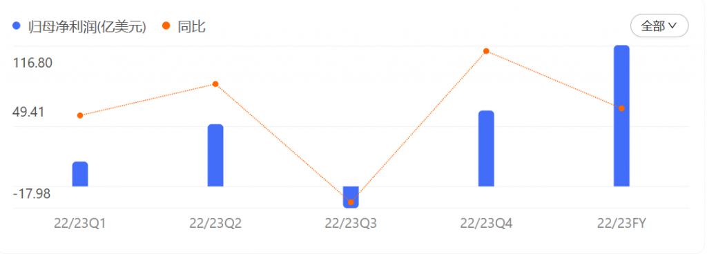 沃爾瑪 2023 財年單季及全年凈利,來自百度股市通