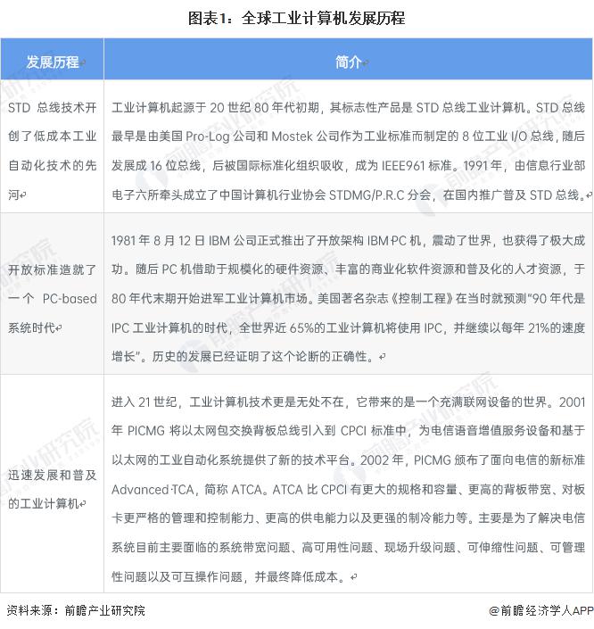 工業(yè)計(jì)算機(jī)起源于 20 世紀(jì) 80 年代初期,STD 總線技術(shù)開(kāi)創(chuàng)了先河 ;1981 年 8 月 12 日 IBM 公司正式推出了開(kāi)放架構(gòu) IBM PC 機(jī),造就了 PC-based 系統(tǒng)時(shí)代 ;21 世紀(jì),工業(yè)計(jì)算機(jī)迅速發(fā)展普及。