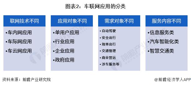 車聯網應用從不同的視角來看有不同的分類方式,可以從聯網技術、應用對象和需求對象等維度來劃分,但無論使用哪種分類方式都涉及以用戶體驗為核心的信息服務類應用、以車輛駕駛為核心的汽車智能化應用和以協同為核心的智慧交通類應用。